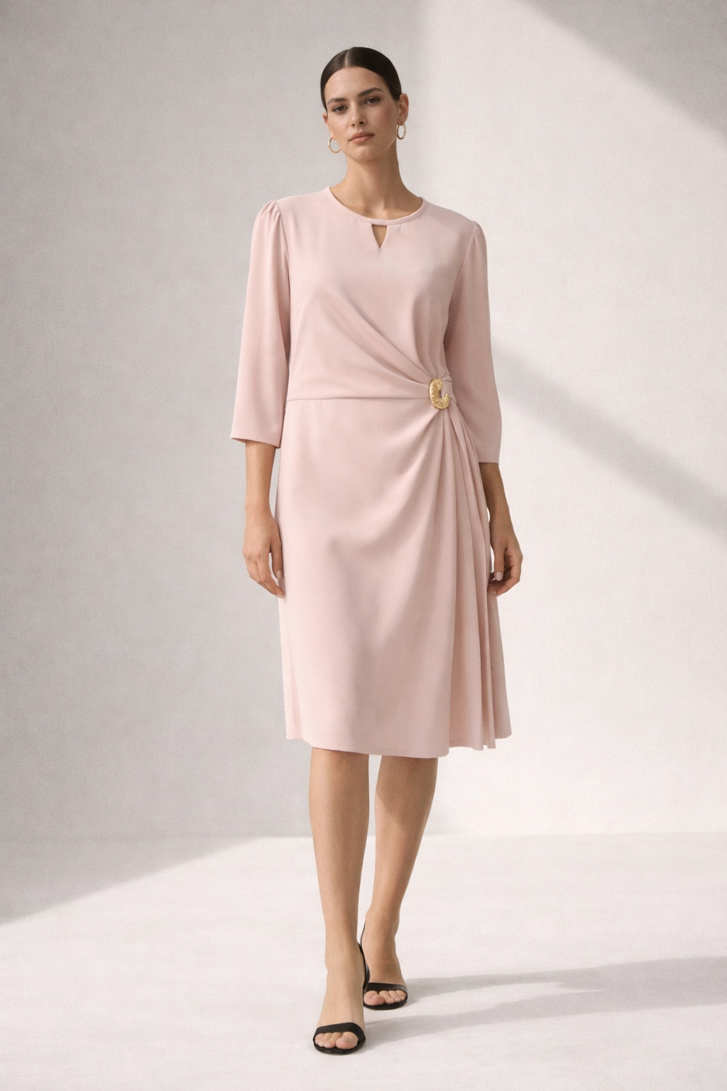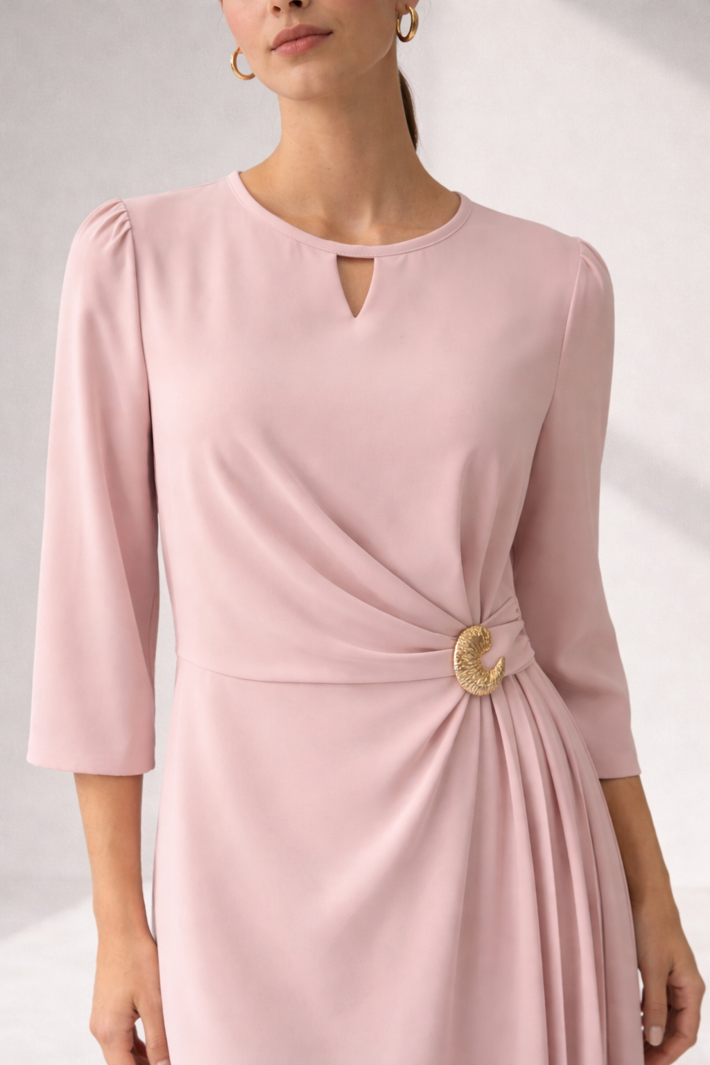 Būkite pirmas aprašęs “Elegantiška puošni rausva suknelė su auksine detale premium”