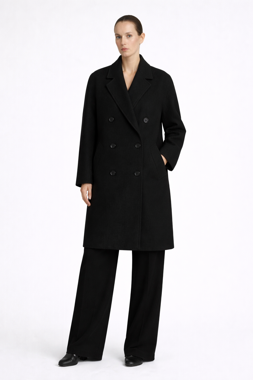 Juodas pavasarinis dvieilis paltas