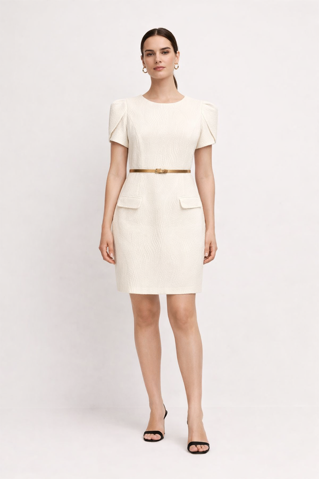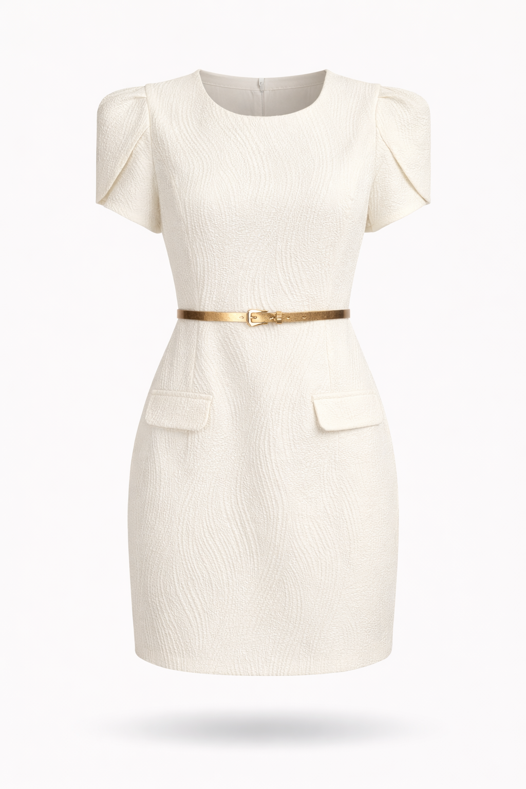 Šampano spalvos trumpa suknelė su dirželiu